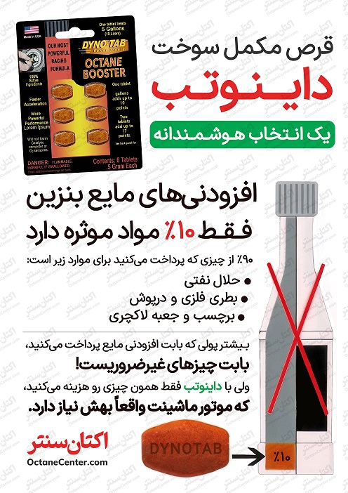 افزایش عدد اکتان بنزین: قرص داینوتب آبی باعث افزایش عدد اکتان بنزین و بهبود احتراق میشود.